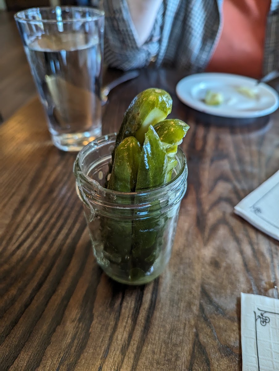 The pickles were amazing! Service was still really good but she didn’t check on us as much as we would have liked, especially after we were done eating. Food was delicious and their Ranch is absolutely amazing