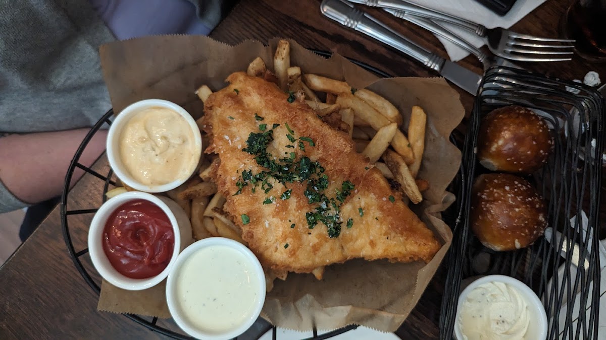 Cute spot with great food. We waited around 40 minutes to be seated, but service was fast once inside. The fish and chips were fresh and delicious. Our waiter was friendly but forgot our appetizer, and the manager corrected the issue quickly. Overall, a good experience.