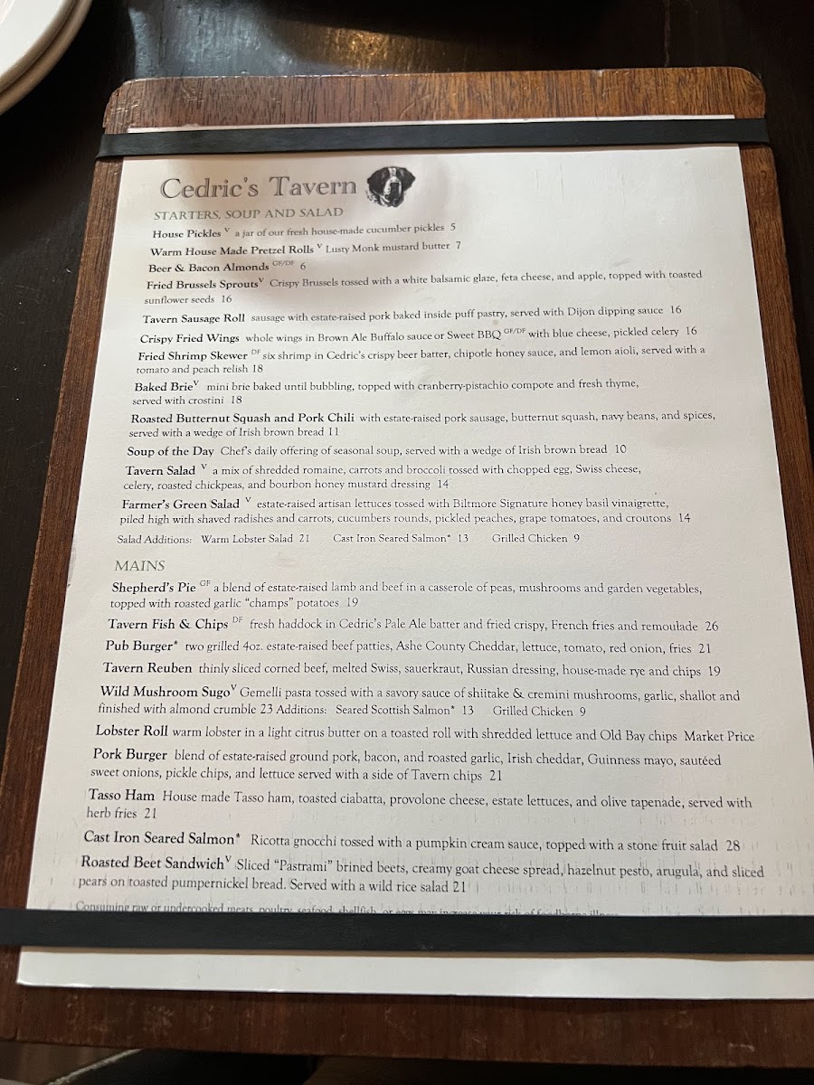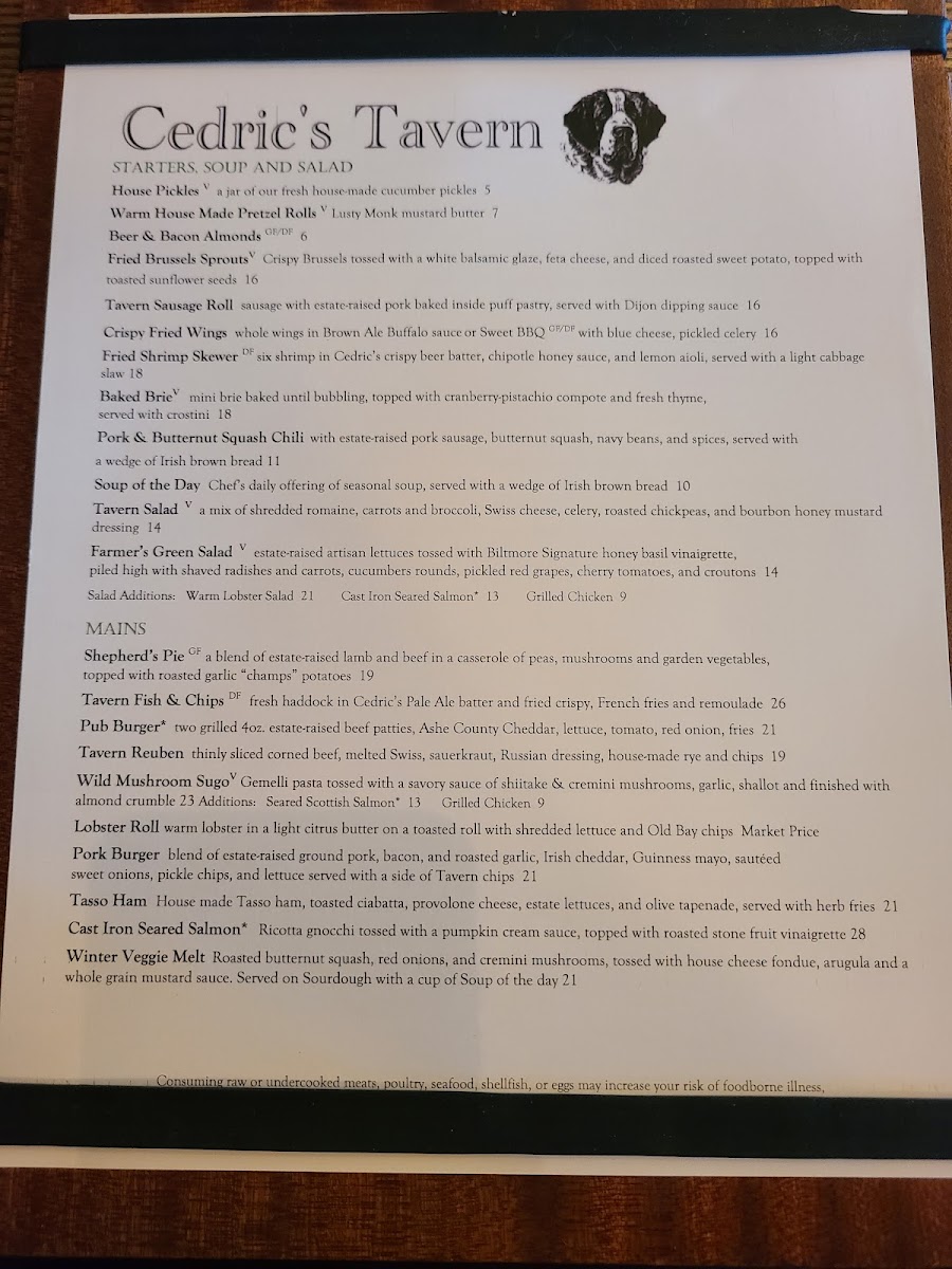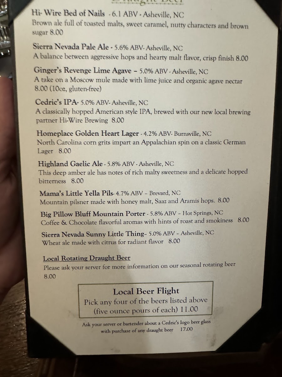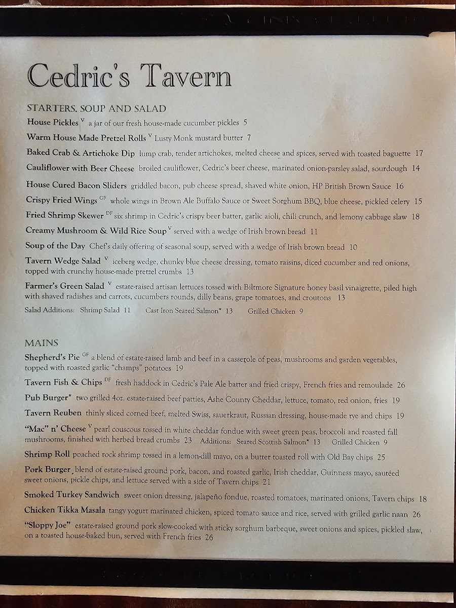 Cedric's Tavern - Asheville, NC Menu