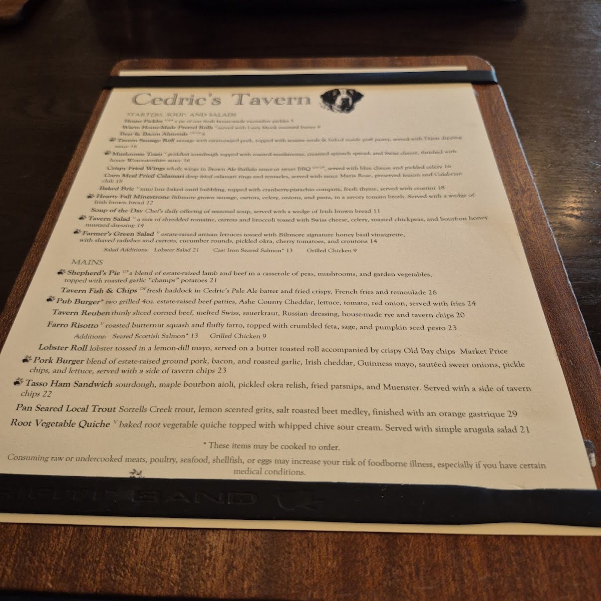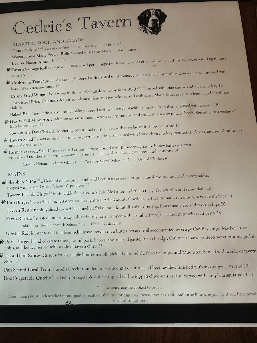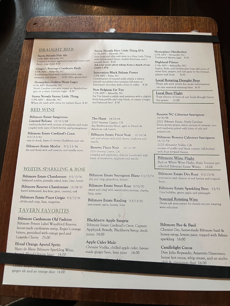 Cedric's Tavern - Asheville, NC Menu